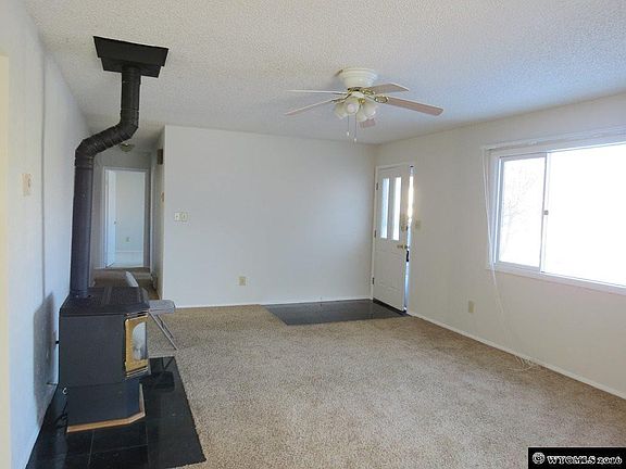 Spacious three bedroom, one level home in Big Wyoming Addition. Good sized lot with mature trees and great landscaping. Oversized two car garage with work benches. Newer paint has been applied to the interior and exterior of the home. Sprinkler to irrigation pump, manual. Master bedroom, living and family rooms. Gas stove centrally located for low energy cost. Electric average is $96/month and gas is $55/month.