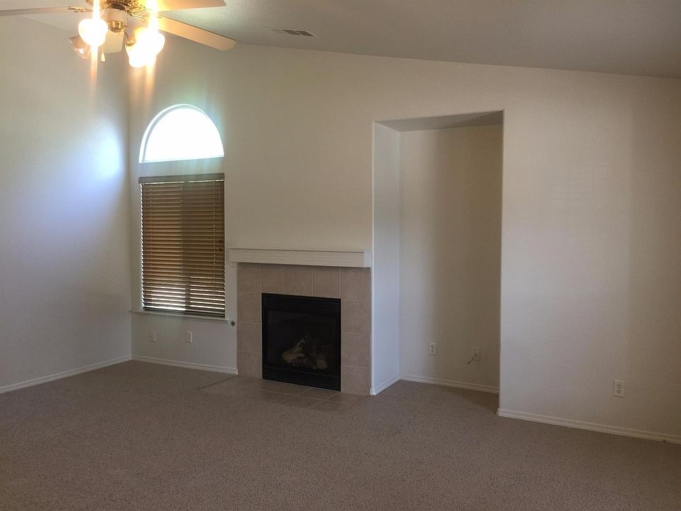 Turn-Key opportunity at an affordable price in Sanger! Benefits of like-new Construction and mature landscaping. This home has all new carpet and paint! Lofty ceiling in the great room makes it geel even more spacious. Gas fireplace and windows on both sides of the room. Cheery kitchen and breakfast area with solid surface counters, gas range/oven breakfast bar. Corner kitchen window above sink overlook the large back yard. 3 ample bedrooms. Both bathrooms have bathtubs. The master suite is a good size with a cathedral ceiling and plant shelves. This home has extra cement added all around the home as well as an extended patio. Wide lot with ample room on the north side to add an approach and gates for RV parking. Alarm is leased and on.