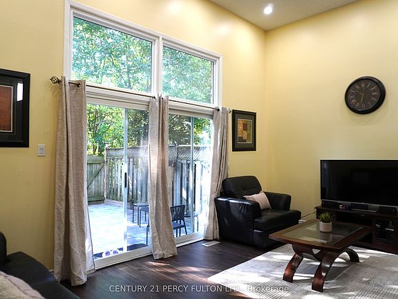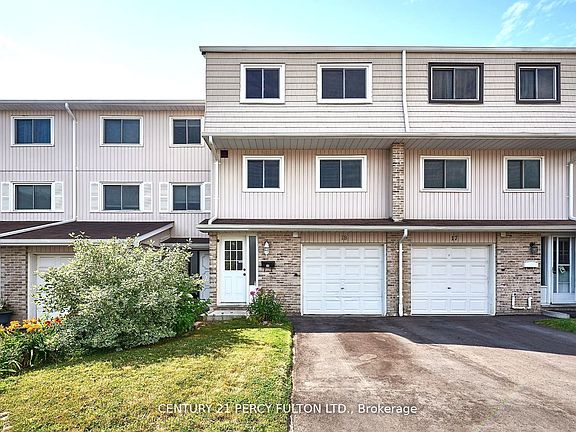 Welcome to this beautifully maintained multi-level townhome featuring a bright and spacious layout! The living room offers soaring cathedral ceilings with pot lights and a walkout to the yard, filling the space with abundant natural light. The updated kitchen showcases quartz countertops, stainless steel appliances (2022), a modern hood fan, and sleek white cabinetry. Enjoy newer laminate flooring throughout the home. The upper level offers a generous primary bedroom with dual closets and a 4-piece ensuite. The finished basement provides additional living space or storage options. Conveniently located just minutes from grocery stores, schools, restaurants, shopping, and more.**** Maintenance fees include high-speed internet and Rogers cable TV. ****