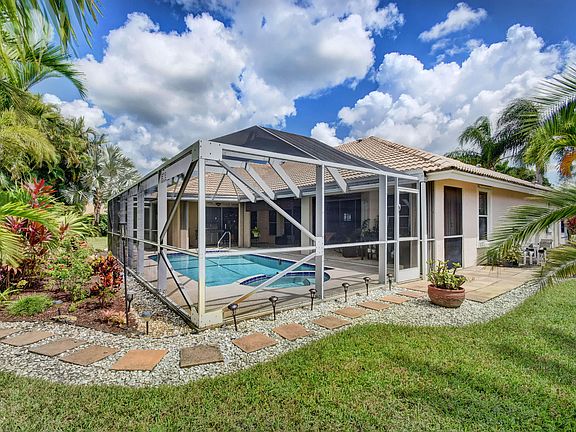 Perfectly maintained pool home with lake and golf views in the sought after gated community of Lakefield West. This home will provide the Wellington lifestyle you've been looking for with over 3400 square feet of living space and spectacular views on a private 1/3 acre lot. 5 true bedrooms, 3 bathrooms, powder room, formal dining, living, and family rooms situated in an open and split layout with vaulted ceilings. The master suite features 2 walk-in closets, a tray ceiling, pool access and gorgeous views of water and golf course. Plenty of space to entertain inside or outside on the expansive covered and screened patio or in the beautifully landscaped backyard. Minutes from The Wanderer's Club for golf and tennis, Equestrian venues and highly rated school district.