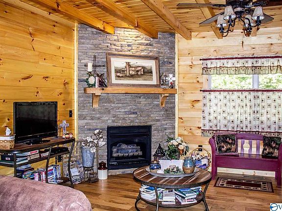 Cabin Fever? Peace and tranquility surround this charming 3 story cabin! Custom touches throughout. Circle gravel drive, Pine walls & ceilings, downstairs has its own Heat/air unit, Basement is 1x12 ship-lap with a propane gas fireplace, Knotty Alder doors and cabinets throughout. Master bedroom has 2 closets, built in custom bathroom vanity, and pine walls. Walk-out basement with a spacious storage area, 2 bedrooms, gathering area, Cedar mantled propane fireplace, and sink area. Perfect for a weekend getaway or full time living. Located on the Coosa River, connected to Weiss Lake. With a public boat ramp next door. GPS: 34.1993 -85.4736
