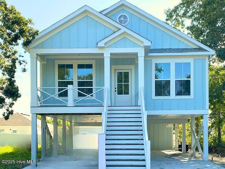 A brand new build and $10,000 towards your closing costs? Yes, please! Don't miss this meticulously crafted, NEW CONSTRUCTION home on pilings in an ICW water access community with NO HOA! This 2-bedroom plus bonus room (with closet), 2-bath, 1,350 sq ft home lives even larger thanks to an open concept design, abundant natural light that shines through a wall of windows, and a stunning accented, vaulted ceiling. Craftsmanship shows in every detail, from quartz countertops, tile backsplash, and gold accents in the kitchen (stainless steel appliances included) to the luxurious primary suite with an impressive walk-in shower with dual rainfall shower system, a double vanity, and a spacious walk-in closet with built-in shelving. Durable LVP flooring flows throughout for easy beach living. Enjoy breezy (and bug free) outdoor dining on the screened-in back porch, or soak up the sun on the adjacent open deck. Ground-level storage keeps your beach gear tidy, and extensive covered parking plus a deep driveway easily fit multiple vehicles, a boat, and a golf cart. Conveniently located 5 miles from Ocean Isle Beach and 7 miles from Sunset Beach, and just minutes from fresh local seafood, restaurants, shops, and award-winning golf. Centrally located between Wilmington, NC and Myrtle Beach, SC for easy airport access. Estimated completion: September 15th, 2025.