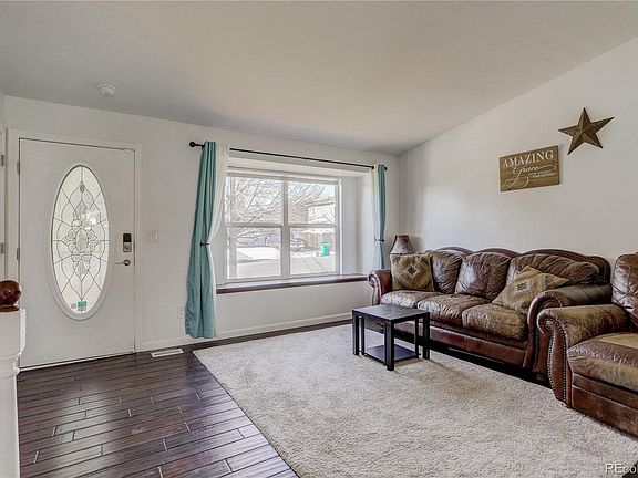 Do not miss out on this charming tri-level in Cherry Creek School District with no HOA and attached 2 car garage. Spacious living area with vaulted ceilings and lots of natural light. Beautifully remodeled kitchen with new counter tops, spacious cabinets, flooring and beautiful views of nearby park . Eat-in kitchen opens to a cozy deck and spacious yard with mature landscaping, garden, fire pit and lots of room to entertain. Downstairs family room has a sliding glass door that leads to the back yard, can also be used as a fourth bedroom. Downstairs also includes laundry area with washer and dryer and has a brand-new hot water heater. Upstairs you will find the master bedroom with walk in closet, updated bathroom and 2 additional bedrooms. Be sure to check out beautiful valley scenery views from all bedrooms. Freshly painted throughout and move in ready. Just a few short steps from Sunrise Elementary School and park. Minutes away from Quincy Reservoir and Cherry Creek State Park. Easy access to E-470, DIA and Buckley Air Force Base. Matterport virtual showing now available!