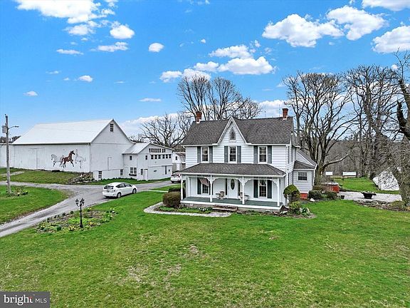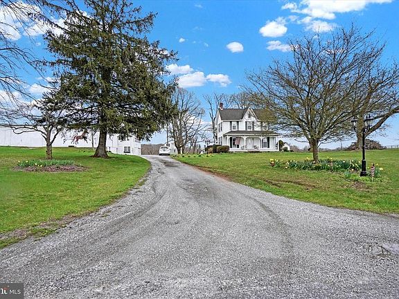 For Sale Ridge Meadow Horse Farm - Explore the endless possibilities available for this picturesque working 157 acre farm, located in Hopewell Township, Southern York County. Located on the property - Multiple outbuildings including a HUGE 13-sided, 2-story bank barn, several other barns, silos, various sheds, 2-story chicken coop; and a 3-sided, 40x60 metal barn/garage with electric; rolling pastures, 2-3 miles of private riding trails, paddocks, and run-in sheds; and a lighted 120x235 outdoor riding arena filled with shock absorbing sand. Acreage consists of approximately 35 pasture acres, 25-30 fenced acres, 37 wooded acres, and 122 tillable acres currently being leased. Ebaugh Creek located on the property is used for irrigation purposes. Road frontage exists along three sides of the property, with acreage extending to the PA/MD line. Small subdivision possibility. If you are a horse lover; hobby, part-time, or professional farmer; someone looking to start a winery/brewery; or someone just looking to escape the hustle and bustle of city life.....you may have just found your heaven on earth! There are two homes on the property - A 2400 sq ft, 2.5 story, 3-4BR, 2BA Farmhouse with large rooms, tons of storage, chestnut hardwoods, primary suite, walk-up attic, with stained glass window, and basement with outside entrance. In addition, there is a currently rented 1080 sq ft, 1-2 BR, 1BA home, to the rear of the main home. Go ahead and bring your horses to this historic farm. Some of the buildings date back into the 1800's, and showcase all pegged construction. We are sure the HUGE (13-sided) modernized 2-story bank barn, is one of the largest and cleanest barns you will ever find! Currently there are 11 stalls (4-12x12, 3-15x17, and 4-20x30), with the possibility of 32 stalls total. The horse area also has a half bath, two tack rooms, a feed room, and more. The farm is currently working, offering riding lessons and boarding opportunities. Let your imagination soar on the 2nd floor! LOADS of barn space, an office, silo access, and a beautifully rehabbed open area perfect for your very own country hoe-down (at one time the owner had seating for 150 people in it, but could do 300 people). Check it out......it might be the perfect spot to hang your spurs! AGENTS - PLEASE review BRIGHT DOCS for important information, including lease information, and read Agent Remarks, BEFORE scheduling a showing for this farm.