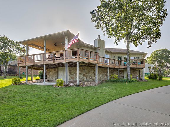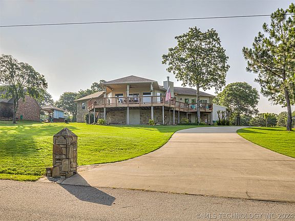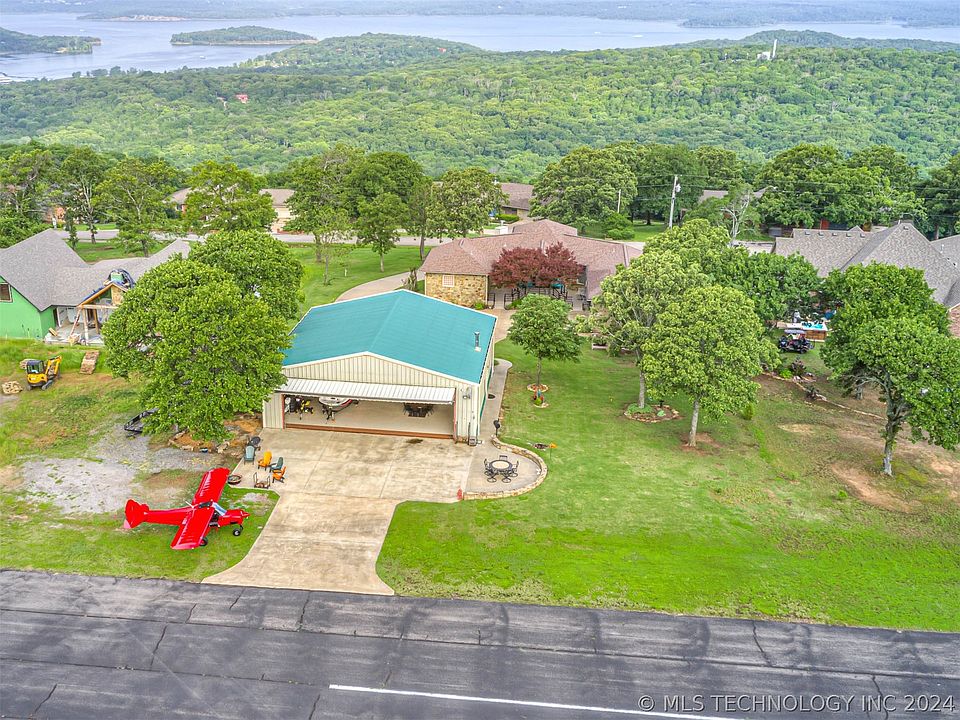 This beautiful home and hangar are situated on a bluff overlooking Tenkiller Lake at Snake Creek Wilderness Airpark (OK06). Upon landing on the 2,840x50' paved runway, you will taxi up to a 50x50 hangar with a 40'w x 11' tall electric door. Inside the hangar, you will find a kitchenette, full bathroom, and ample storage space for your airplane and lake toys. As you cross the driveway to the house, you will enter from a large, newly rebuilt porch ideal for shade and relaxation. The spacious living room boasts vaulted ceilings and panoramic lake views, extending to the remodeled kitchen with painted cabinets, updated granite countertops, and stainless appliances. The master suite offers abundant natural light, lake views, a large walk-in closet, and spacious bathroom with heated floors, a walk-in shower and jacuzzi tub. Three additional bedrooms and another full bathroom provide ample space for guests. Additionally, roof was replaced in 2019 with a Class 4 Impact Resistant Roof. The house boasts multiple outdoor entertainment areas, including a deck from the master bedroom across the living room, multiple and seating areas outside the hangar to enjoy watching airplanes with a lake view. Enjoy the vibrant Snake Creek community of aviators, fellowship, and fun, easily accessible by car and by plane!