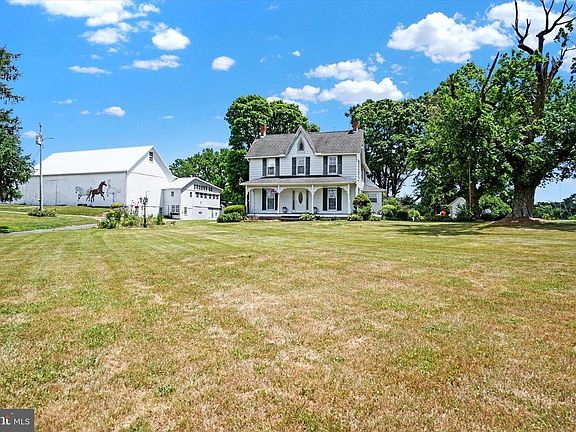 Very rare find! Hurry to view this wonderful farm near the PA/MD border known as Ridge Meadow Horse Farm - Explore the endless possibilities available for this picturesque working 157 acre farm, located in Hopewell Township, Southern York County. Located on the property - Multiple outbuildings including a HUGE 13-sided, 2-story bank barn, several other barns, silos, various sheds, 2-story chicken coop; and a 3-sided, 40x60 metal barn/garage with electric; rolling pastures, 2-3 miles of private riding trails, paddocks, and run-in sheds; and a lighted 120x235 outdoor riding arena filled with shock absorbing sand. Acreage consists of approximately 35 pasture acres, 25-30 fenced acres, 37 wooded acres, and 122 tillable acres currently being leased. Ebaugh Creek located on the property is used for irrigation purposes. Road frontage exists along three sides of the property, with acreage extending to the PA/MD line. Small subdivision possibility. If you are a horse lover; hobby, part-time, or professional farmer; someone looking to start a winery/brewery; or someone just looking to escape the hustle and bustle of city life.....you may have just found your heaven on earth! There are two homes on the property - A 2400 sq ft, 2.5 story, 3-4BR, 2BA Farmhouse with large rooms, tons of storage, chestnut hardwoods, primary suite, walk-up attic, with stained glass window, and basement with outside entrance. In addition, there is a currently rented 1080 sq ft, 1-2 BR, 1BA home, to the rear of the main home. Go ahead and bring your horses to this historic farm. Some of the buildings date back into the 1800's, and showcase all pegged construction. We are sure the HUGE (13-sided) modernized 2-story bank barn, is one of the largest and cleanest barns you will ever find! Currently there are 11 stalls (4-12x12, 3-15x17, and 4-20x30), with the possibility of 32 stalls total. The horse area also has a half bath, two tack rooms, a feed room, and more. The farm is currently working, offering riding lessons and boarding opportunities. Let your imagination soar on the 2nd floor! LOADS of barn space, an office, silo access, and a beautifully rehabbed open area perfect for your very own country hoe-down (at one time the owner had seating for 150 people in it, but could do 300 people). Check it out......it might be the perfect spot to hang your spurs! AGENTS - PLEASE review BRIGHT DOCS for important information, including lease information, and read Agent Remarks, BEFORE scheduling a showing for this farm.