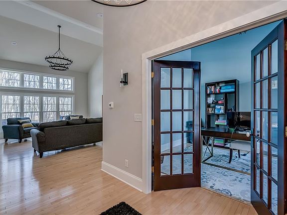 What a stunner! Come and take a look at this gorgeous contemporary home in a league all its own. Built in 2005 this home has stood out as one of the areas most intriguing. Through the front door entry you are greeted with cathedral ceilings, stunning hardwood floors, new lighting fixtures and open living room complete with custom built in cabinetry, gas fireplace and wall of windows. Beautiful eat in kitchen with leathered soap stone countertops, custom built island with gas stove top, custom cabinetry, dining area and living room combination topped off with beautiful walk in pantry. Spacious master ensuite with cobble stone tile floor, walk in shower/steam unit, tub & walk in closet with large countertops and dual sinks. Completely renovated full guest bath and additional 1st floor bdrm & office as well. Upstairs features 2 bdrms both with closets and newly renovated full bath. Semi finished attic space great for storage or can be finished into additional living space. Full partially finished basement great for entertaining with lots of space to keep going. Many updates within the last year to include central air, fresh paint, landscaping fenced in yard and more!!