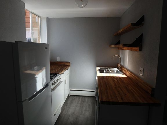 Remodeled one bedroom apartment for rent. New kitchen New appliances New flooring New paint Off street parking Outside entrance One nice dog or cat welcome non smoking unit $100 monthly utility fee, includes heat, electric, hot water, water, sewer and trash.