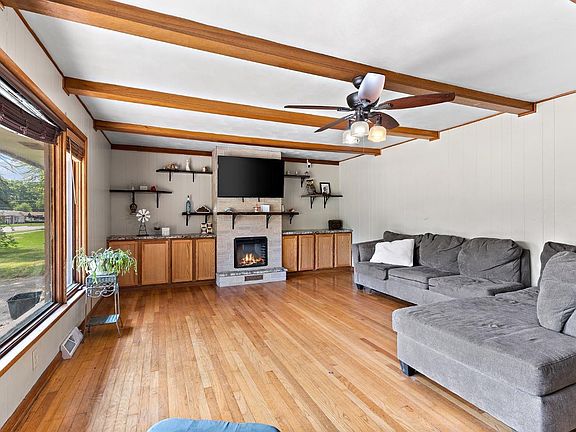 Welcome to 1976 Center! Upon arrival, you'll notice the home features ample parking space with circle and straight driveways. When you enter, you will find a HUGE living room with a NEW electric fireplace, plenty of built-in storage, hardwood floors, wood ceiling beams, and an oversized picture window with a view of the front yard. Continuing through the foyer you are led to the formal dining space next to the kitchen - featuring NEW flooring in both rooms. Down the hall from the dining room is the primary bedroom, full bathroom, and two generously sized secondary bedrooms. The main floor is also home to a finished laundry room, half bathroom, 2.5 car garage, large sunroom, and access to the .64 acre backyard complete with a storage shed! In the finished basement is a rec room with fireplace, two offices (potential bedrooms), bar area, workshop, storage room, and an additional bathroom. If you've been looking for over 4,000 finished square feet at a great price, this may be the ONE!