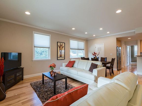 Luxury Single Family 4BR/3BA House in Mountain View. Just minutes to Google/LinkedIn/Microsoft. Easy Bike/Pedestrian Access to Shoreline Lake, Stevens Creek Trail, and Bay Trails. Close Proximity to Costco, Best Buy, Sierra Vista Park, 101, 85, and Central Expressway. 4 Bedrooms & 3 Bathroom (1BR located on first floor). Built in 2006. Attached 2 car Garage & 2-Car Driveway. Lots of built-in storage including shelving and bike racks. Open Layout for a great deal of natural light. Beautiful/Private Backyard with patio and landscaping. Hardwood Flooring on 1st floor. Custom High-End Window Treatment. Recessed Lighting w/ dimmers. Central AC & Heating. Granite slab kitchen counter. Marble bathroom countertops. Custom tile showers. Stainless Steel / Energy Efficient Refrigerator, Dishwasher, and Gas Oven Range. Energy Efficient Washer & Dryer on Top Floor. Gardening Service Included