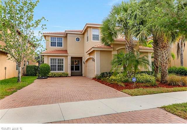 THE BEST VALUE! This spacious "Osprey" Floorpan home is located in one of North Naples most desirable communities, Saturnia Lakes. Offering 5 Bedrooms, Den, 4 Baths, and almost 3400 Sq Ft, this home has room for the whole family! Through the front door, you are greeted with elegance - Formal Living & Dining Rooms with Crown Molding, Family Room with Sliders to the Lanai, & an Upgraded Kitchen with Solid Wood Cabinets, Granite Counter Tops, and Breakfast Nook. The SECOND FLOOR MASTER SUITE is fit for Royalty, offering HIS & HER BATHROOMS, Large His & Her Walk In Closets, and a Exercise/Dressing Room. You will also find 3 additional bedrooms, bath, and Laundry Room on the second level. Saturnia Lakes offers a resort pool, lap pool, kiddie pool, hot tub, fitness room, dance studio, internet cafe, saunas, massage rooms, billiards room, grande ballroom, 4 clay tennis courts, playground, basket ball court, putting green, & miles of walking paths. If you are looking for space, then this is it! Backyard can accommodate a pool/spa or can be fenced in. HOA fees include Landscaping, Irrigation, Amenities, new Fiber-Optics throughout the community, Premium Cable TV, Internet, and Phone!