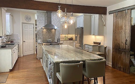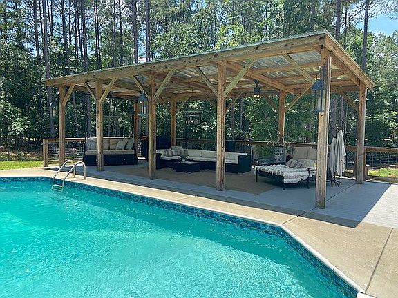 Nestled on over 2 acres of beautifully wooded property, this lovely 4 bedroom 3 bathroom home offers comfort and style in a serene setting. This unique lake community property provides many ways to enjoy the outdoors. Meander along the drive way to see the custom 1800sq ft barn for all your recreational toys and workshop. The barn even has an art studio. There is a sparkling in-ground salt water pool with an 800 sq ft outdoor living space. In addition, a new pond was implemented and a new roof was installed August 2022. This home situates the master suite on the main floor while also having another large bedroom and full bath on the same level. Upstairs you will find 2 additional bedrooms, a full bath and a bonus room. The attic space is tremendous. The kitchen received a new makeover with designer upgrades such as quartz, a featured backsplash with natural stone and cut mirror inlay, Italian dual fuel range and Décor refrigerator. The barn doors are authentic and the complementary shiplap and designer lighting brings it all together for that casual upscale environment. Perfect for entertaining with covered porches and screened deck. Excellent Clover schools. Beautiful Allison Creek community with walking paths and soon to re-open the newly upgraded Allison Creek boat landing with added campsites, trails, canoe/kayak launch and ranger stations only 2 miles away from the home. This property has the potential for homesteading with the luxury of lake living. And guess what, no HOA fees.