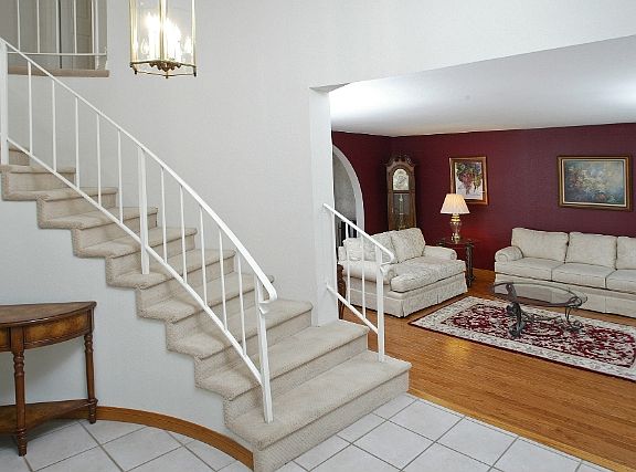 This beautiful 4 bedroom & 3 bath home has spectacular sweeping views of the valley and mountains. It features a 3 car garage, and a private entertainers yard with lovely pool & spa. The completely remodeled cooks kitchen features granite counters & travertine backsplash, custom cherry cabinets, white appliances, ceramic tile floor, and it's open to the family room with fireplace. The home features smooth ceilings, warm custom paint colors throughout, plus hardwood, newer carpet & tile flooring. There is a formal living room & dining room and downstairs bedroom (being used as an office). A new heat & AC dual zone system was installed March 2012. All bathrooms have been partially updated & some windows replaced. The upstairs bedrooms are spacious & each has a ceiling fan & larger closet. The master bedroom has large custom closets and a newer balcony with unobstructed views. The laundry is in the 3 car garage which offers plenty of storage space.