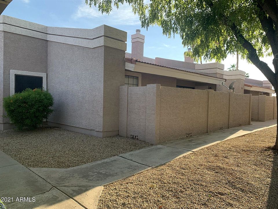 BACK ON MARKET! BUYER COULD NOT PERFORM. Move-In ready home in highly sought-after development in highly demand area of Chandler, close to shopping, dining, convenient to major freeways (101, 60 & 202). Stylish 2 bedrooms, 2 bath patio style condo. Single level, w/modern 16' vaulted ceilings, & tiling flooring throughout. The Kitchen boasts brand new granite countertops, modern lighting & quality appliances. Bedrooms have walk-in closets & en-suite baths. Bathrooms are recently updated. The patio is walled & ideal for outdoor dining, pet area, BBQ. Unit is freshly painted, a spacious dining area, plenty of storage, reserved covered parking, wood-burning fireplace in living room. HVAC regularly serviced & covered by transferable home warranty. Highly sought-after development.