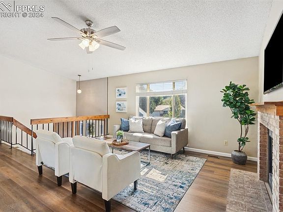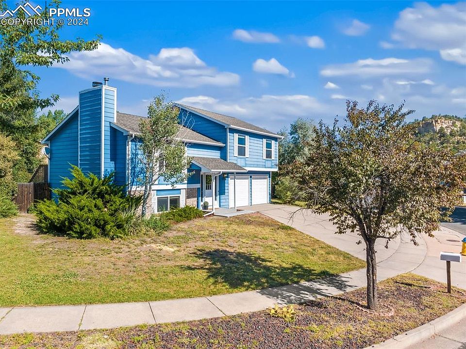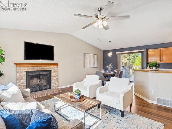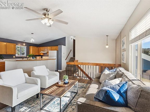 Discover this charming 3-bedroom, 2-bath home, perfectly nestled on a quiet street, just a short walk or bike ride to the University of Colorado Colorado Springs (UCCS). Step inside to find an inviting open floor plan with high ceilings, newer wood laminate flooring, and modern light fixtures. The spacious kitchen boasts ample cabinet and counter space, along with a large island, making meal prep and entertaining a breeze. The dining room seamlessly connects to the backyard, while the inviting living room, with its warm fireplace and large window, floods the space with natural light. Upstairs, you will find two secondary bedrooms and a peaceful primary suite that offers a walk-in closet and access to the upper full bathroom for added convenience. The finished garden-level basement provides additional living space, featuring a large family room, a second fireplace, a ¾ bath with a shower, a laundry room, and the flexibility to create a cozy guest suite or entertainment area. Outside, the private fenced backyard is a true retreat, complete with a newer deck—perfect for summer barbecues or relaxing after a long day. The two-car garage offers plenty of shelving and storage, with an extended driveway for additional parking. Air conditioning ensures you stay comfortable during the summer months. Ideally located with easy access to I-25, UCCS, schools, parks, military bases, shopping, dining, and entertainment, this home is the perfect blend of comfort, style, and convenience. This is one you will want to see!