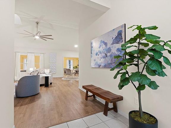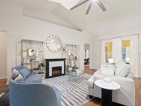 Welcome to this well-maintained single-story contemporary home located in the desirable Portofino community. Built in 2006, this residence offers 4 bedrooms, 2 bathrooms, and 2,267 square feet of heated living space, thoughtfully designed with a split-bedroom layout and high ceilings throughout. Inside, you’ll find a bright and open living and dining room combination, enhanced by vaulted ceilings, skylights, and durable luxury vinyl and tile flooring. The spacious kitchen is equipped with modern appliances and flows seamlessly into the main living areas, making it ideal for everyday living and entertaining. The primary suite, located on the main floor, features a walk-in closet and a private bathroom with dual sinks, a garden tub, and a separate shower, offering a comfortable retreat. Three additional bedrooms provide flexibility for guests, a home office, or hobbies. Residents of Portofino enjoy access to a community pool with reasonable monthly association fees. Conveniently situated near shopping, dining, and everyday necessities, this home offers a blend of comfort, functionality, and community living.