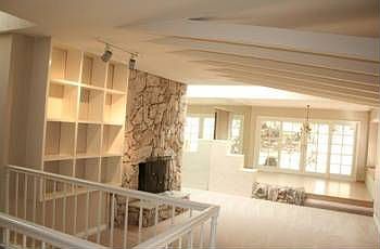 The house is freshly painted with new tiled shower. Tiled floors and carpet are neutral and tasteful. Three bedrooms including master upstairs and a second master suite downstairs.