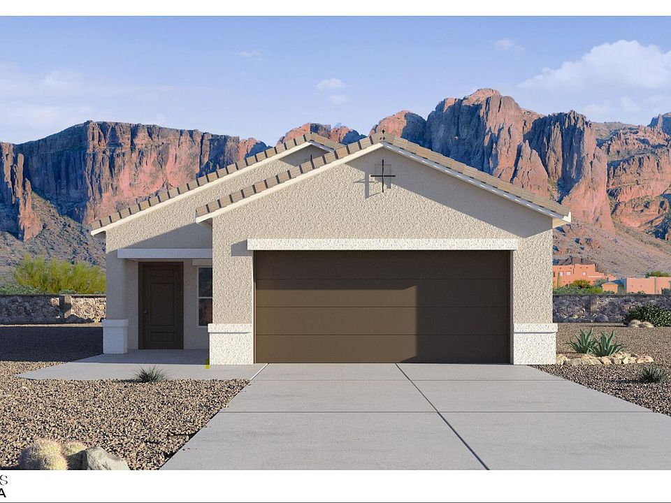 Welcome to Radiance at Superstition Vistas, a new master planned community located on the border where Mesa meets Apache Junction. This is a rare opportunity for optimal living - to have the convenience of city living while enjoying the breathtaking Superstition mountains! Small town feel meets modern amenities at its best! The amber-1330 sq ft, 3 bed/2 bath adorable, energy efficient single level home in which you will find tile in all common areas, 9 foot ceilings and on trend extra bright white walls. The kitchen has gorgeous maple cabinets, granite countertops & large island. Located close to the 24, 60 & 202.