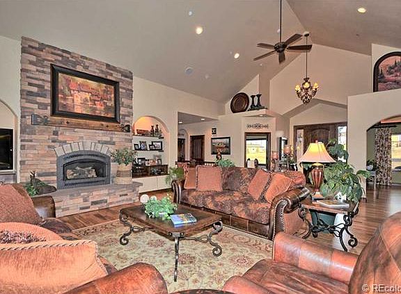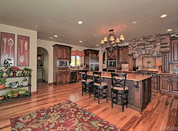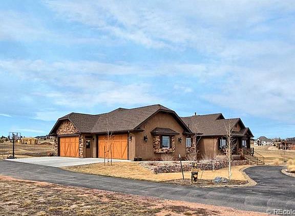 Step into luxury and elegance in this newly constructed masterpiece. This stunning ranch style home features over 7000 sq ft including a second master suite, office and laundry room on the main level; Pikes Peak views and overlooks 3 golf greens; hickory floors; truly gourmet kitchen for buyers w/ discerning tastes with granite, rustic cherry cabinets with 'soft close' drawers, two butler pantries with additional pantry down the hall, two sinks, two double ovens, two dishwashers, 6 burner gas range with hood, all SS/Kitchenaid appliances, no upgrade overlooked in the stylish finishes of this truly remarkable home. Approximately 1000 square feet on lower level with separate access from garage used for home based business but options for this space are limitless. In-house stereo system/surround sound, formal dining with tray ceiling, granite throughout, 4 car garage, cul-de-sac, flag lot, partially covered trex deckng with AMAZING views!