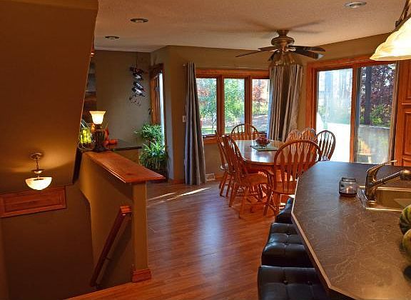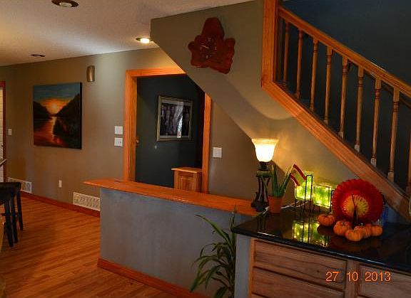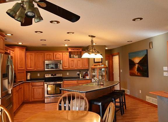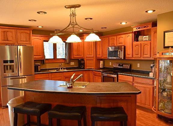 Beautiful 4 bedroom, 2 bath home, country setting but close to town. Hickory cabinets, rosewood flooring in living room. Park like setting with attached double garage plus detached 24x22 garage.