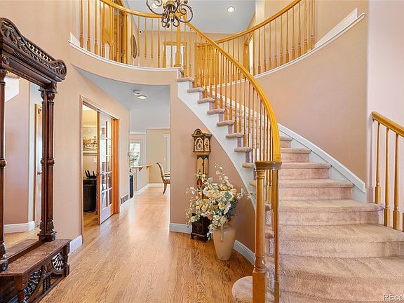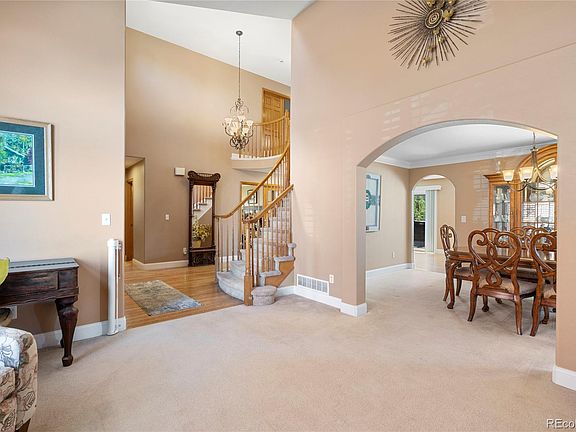 Upstairs, the luxurious master suite features a spacious sitting area, a see-through fireplace, and a spa-like five-piece bath. Two additional bedrooms and a full bathroom complete the upper level. The fully finished walk-out basement provides in-law quarters with a large family room, full kitchen, 5th bedroom (with laundry hook-up), a ¾ bath, and a half bath. Step outside to the serene backyard, featuring fruit trees and a covered stamped concrete patio. Located within the top-rated Cherry Creek School District and surrounded by parks and shopping, this home combines luxury living with a vibrant community. Don’t miss your chance to own this exceptional property!