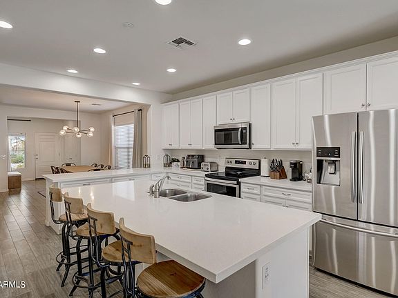 The heart of the home features an open-concept living area, perfect for entertaining or relaxing in style. The kitchen, a modern chef's dream, is adorned with top-of-the-line appliances and sleek finishes, making every cooking experience a delight. Location is everything, and this home delivers! Situated with easy access to both I-10 and the 303 freeways, your commute and weekend getaways are a breeze. Whether you're a first-time homebuyer or looking to upgrade your lifestyle, this home is a perfect choice. Don't miss out on the opportunity to own a slice of modern home in one of Buckeye's most desirable neighborhoods. Your dream home awaits!
