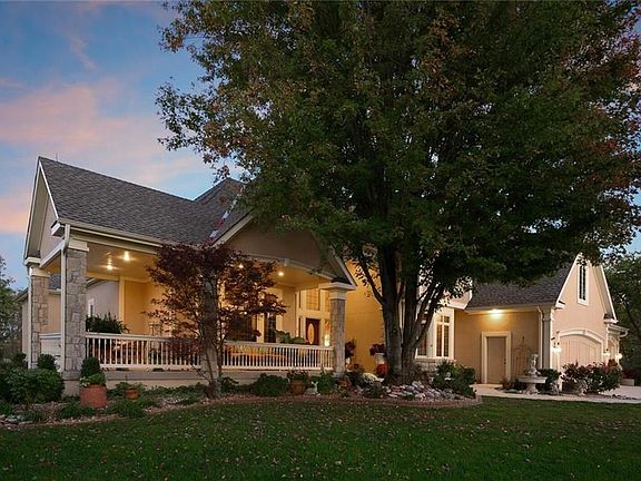 AMAZING COUNTRY ESTATE AWAITS! Meticulously Maintained 1.5 Sty Home on Picturesque 15 Acres with 2 separate Stocked Ponds & a Huge Morton Building. 8+ Garages Overall. Wrap Around Porch for Relaxing & taking in the INCREDIBLE COUNTRYSIDE VIEWS! Finished Lower Level with Full Kitchen, Living Room Area & Non-conforming 5th Bedroom. Tandem Garage in Back of house along with a Fort Knox Vault! 5 Year New Roof, Freshly Painted Interior & Newer HVAC System. Sophisticated Country Living Minutes to Olathe & College Blvd. Gas Well on property Heats Home & Morton Building for no Cost. Stunning Tree Lined Drive. Some Newer Anderson Windows recently replaced. Dormer Room in Upstairs could be turned into additional Bedroom. Windows Galore in this home allows you to see the Beauty of the Property from almost any room.