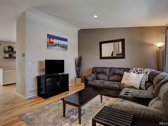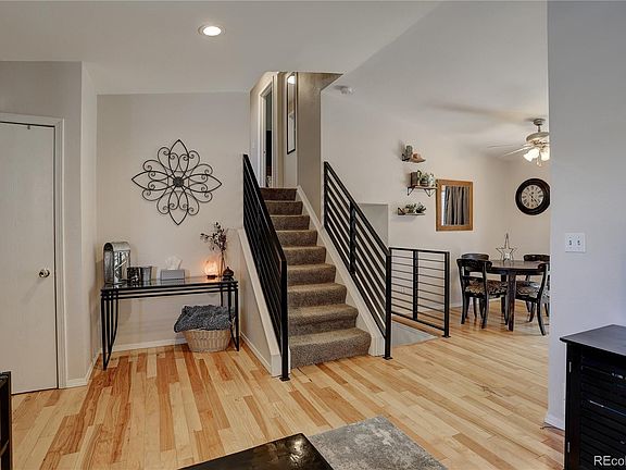 Move in ready home in award-winning Cherry Creek school district. Vaulted ceilings with natural light and hickory wood floors on the main level. Gorgeous, custom wrought iron railing on the staircase. Recessed lighting and newer interior paint. Upper level has 3 bedrooms and a nicely updated bath. Spacious lower level family room. Inviting front porch and a beautifully landscaped lot that includes a sprinkler system and a new paved patio and retaining wall. Backyard is perfect for entertaining. Furnace and central AC installed in 2016 and hot water heater in 2017. Easy access to 470 and walking distance to Sunrise Elementary School. Don't miss seeing this home!!
