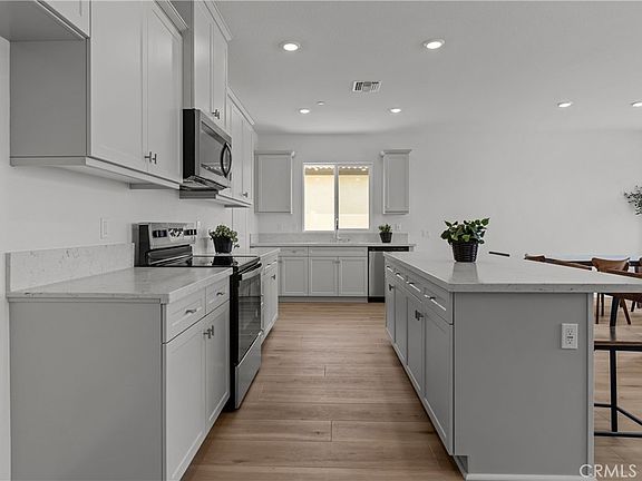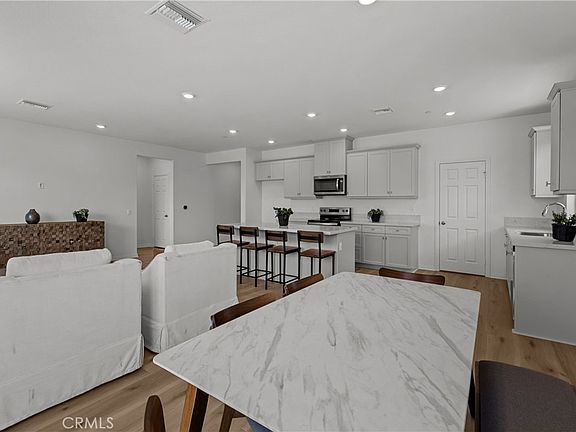 As you enter this thoughtfully designed, brand-new, single story home, you are instantly greeted with the stunning luxury vinyl plank flooring that carries through the entryway, hallways, great-room, kitchen, and laundry room for a cohesive look. The kitchen showcases highly requested cloud-white shaker-styled cabinetry, large walk-in pantry, modern quartz counter tops, and stainless steel microwave, dishwasher, and stove. The three spacious bedrooms have plush carpet, two of which have walk-in closets. The living room sliding doors opens to the bright back yard on a great corner lot. Argento is located in the prestigious Orangecrest area of Riverside. Walking distance to award winning schools, close proximity to shopping and dinning, with easy access to the 60, 215, and 91 freeways.