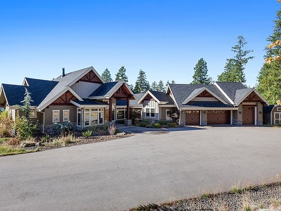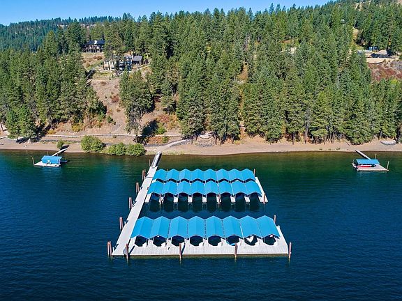 Extraordinary Lake Coeur d'Alene secondary waterfront home with 24' BOAT SLIP in the community marina with sandy beach. Boasting serene Lake Views situated on 19+ wooded acres in premier private gated community, The Ridge at Sun Up Bay. Masterfully built in 2017, this 3 bed, 3.5 bath, 3782 Sq Ft refined single level beauty looks out to Sun Up Bay on Lake CdA with room for a SHOP! Custom built with fine finishes throughout affords tranquil & elegant living for the discerning luxury home shopper. Oversized heated 4-car garage w/10' RV door, abundant storage, dog kennel on side yard & tool shed. Open flow layout w/durable & timeless elements to inspire admiration for generations to come. Live life to the fullest in North Idaho!