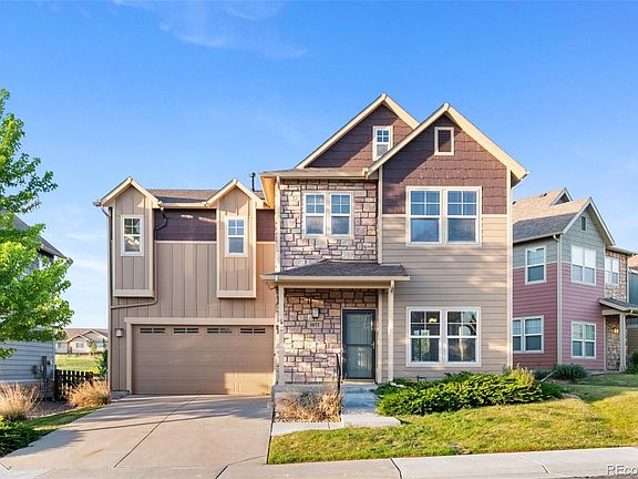 Welcome to this charming south-facing, two-story home in the Latitude at Vista Ridge Community that backs up directly to the Colorado National Golf Club course with stunning views! This property features 3 bedrooms, 2.5 bathrooms, and an open main level floorplan, ideal for everyday living. Enjoy the cozy gas fireplace, central AC, and a spacious pantry for all your storage needs. The spacious primary suite is a luxurious escape, complete with a deluxe 5-piece bathroom, a large walk-in closet, and lots of windows where you can take in the beauty of the golf course and surrounding landscape. The built-in office space in the upper hallway eliminates the need to use one of the bedrooms as an office and don't miss the easy access attic that is finished with tons of storage space. The sizable laundry room is located at the top of the stairs making it easy and accessible. The oversized 2-car garage provides ample space for vehicles and storage. The community boasts fantastic amenities, including a picnic area just steps away, scenic paved trails, and an excellent HOA clubhouse with a great pool, tennis courts, and volleyball. The HOA also maintains the front landscaping and clears the snow in the winter creating a very low-maintenance home exterior. Walkable schools and proximity to shops, restaurants, and highways make this home perfect for a comfortable and convenient lifestyle. Reach out to the listing agent or your agent to set up a showing and come view your next home today!