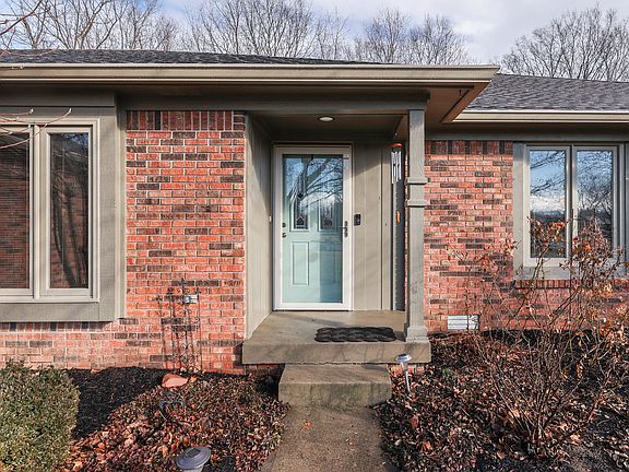 HUNTERS POINTE. 2041sqft 4 BEDROOM + 2.5 BATH Brick Ranch Home! Kenton Franklin Built. Original Owner; Features: Eat-In KITCHEN: Lots of Counter & Cabinet Space + Pantry + Brkfst Bar; BRKFST Nook; Large Open GREAT Rm: Vaulted Cathedral Ceilings w/Exposed Beams + Masonry Wood/Gas Fireplace; Formal LIVING (or Dining) Rm; MASTER Bdrm: Dbl Sinks + Full Shower Stall + His&Her Closets; LNDRY (W&D Included) Half Bath; BACKYARD: TreeLined, Large Wood Deck to Enjoy; 2-Car GARAGE: Oversized, Finished, Workshop Area; ALSO: Custom Woodwork + Lots of Closet Space + Custom Shades & Venetian Blinds + New Exterior Paint '22 + New Storm Door '22 + Newer HVAC + High Efficiency Furnace + H20 Heater '19 + New Microhood; Cul-De-Sac Lot in Desirable Neighborhood