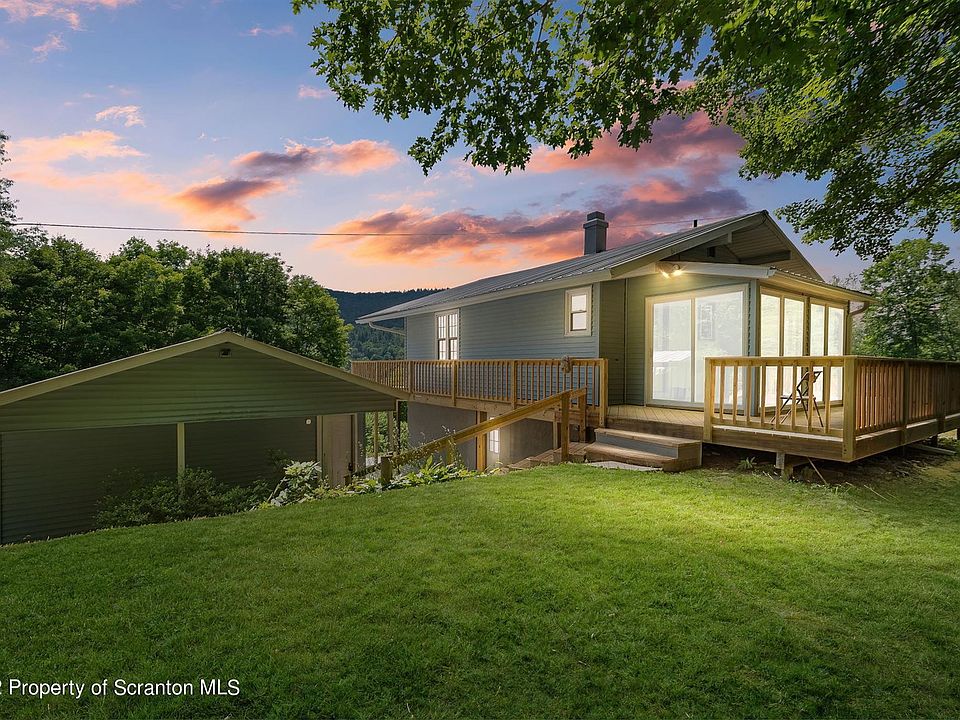 This property is in the Blue Ridge SD and sits on 17.1 acres with gas rights transferring to buyer. Property has three bedrooms, one full bath, huge stone fireplace and a three car garage. The view is magnificent from the wrap around deck and windows. The home is very close to school. Quiet road setting, lots of privacy.