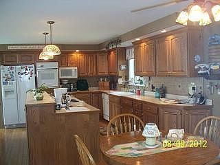 This is an exceptional, well-kept and well-built ranch home, carefully planned by its present owners. Perched on a lovely hillside with nicely landscaped grounds,a backdrop of woods, and a ``million dollar`` view. Enter from the front covered porch with its formal side-lighted door into a pretty foyer with oak floor and coat closet and then on to an open dining room, kitchen, and living room. Gleaming hardwood floors, custom solid oak cabinetry, island station with loads of storage, counter range, two Swanstone sinks, newer built-in oven, beautiful wall tile, excellent lighting, and so many more bells and whistles for the joy of cooking! Recently painted in tasteful shades throughout, loads of Anderson-tilt-in windows, a gas fireplace inthe living room, and glass doors from the dining area to a large covered deck in the back. On one side of the great room area is an office/den or guest room, a full bath with tub, and then the master bedroom with walk-in closet, beautiful bath withgranite, two-sink vanity, heated floor and ceramic tiled shower room. On the other side of the living area is an incredible laundryroom with all kinds of built-in counter/work space, drawers and cabinets for folding and sewing, another lighted closet (so many throughout this home) AND a half-bath. Then out through a very nice ceramic tiled back entry room with yet another closet and access to the attached one-car garage with large, heated L-shaped workshop beyond. There are stairways from insi (Listing 6105856 Confirmed 2/27/2013)