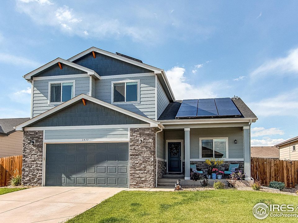 This home comes with a $427 savings off your monthly payment for the first year. Ask me how! Slow down in Milliken and enjoy small town, front porch living - yet centrally located to all major amenities and highways - this is the home you've been looking for! The beautifully maintained home comes with the benefit of lower cost utilities with owned solar panels offsetting your electric bill. This 2 story home includes 4 bedrooms (plus an office) & 3.5 baths spread out over 3,200 finished sq ft space plus an oversized 600 sq ft garage! You are welcomed by a very inviting entryway leading to the open living room, dining and kitchen. The vaulted ceilings flood the space with light and opens to the backyard patio... with fenced yard. Large Primary suite with a very large walk in closet. Conveniently located laundry room next to bedrooms. Plenty of living space between the loft area, and recently finished basement. Great option for a rec room, workout area, and storage. Enjoy the Colorado outdoors at Colony Pointe with walking trails around Erlich lake.