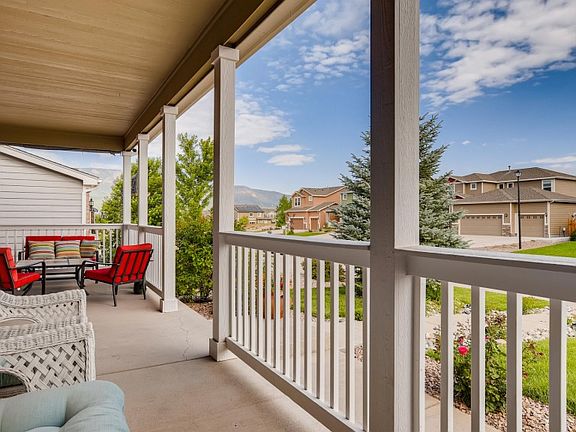 Absolutely stunning two story in Monument's sought-after Trails End neighborhood. This home boasts everything! New A/C in 2020, new whole-house humidification, new paint in 2020, new CUSTOM partially covered deck, concrete 1/2 court basketball court , 9' ceilings on main, and new hardwood and luxury laminate flooring throughout home! This home has amazing, stately curb appeal and three-car garage to protect your cars and toys. As you enter, you'll find a lovely formal living room to the right, and formal dining to the left. Beautiful entryway leads into huge two-story family/great room with massive windows and gas fireplace. Gourmet kitchen has granite countertops, undermount sink, island with rangetop and convenient double-ovens, with plenty of room for daily dining for the whole family. Main level also includes ample private home office that is perfect as careers shift to telecommuting, as well as powder room. Upstairs, you'll find a beautiful, vaulted master bedroom suite with attached five-piece bath and walk-in closet. The upper level also showcases views of the vaulted lower level from the catwalk hallway, three more ample-sized bedrooms, and an additional full bath. As you venture to the basement, you'll discover two more inviting bedrooms, a huge second family room, an updated 3/4 bath, and an additional large room with french doors that could easily be converted to another bedroom with the addition of a closet. Basement is roughed-in for additional kitchenette and laundry room for potential in-law suite. It also features a walkout to lower concrete patio with basketball court and pristine lawn backing to open space. Check out the mountain views!! This home is turn-key and needs nothing. Schedule your private showing today!