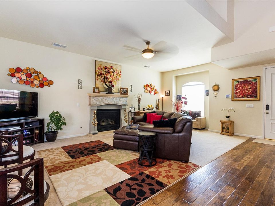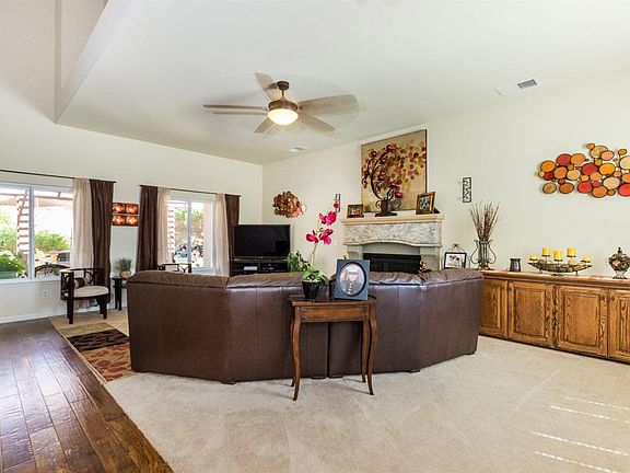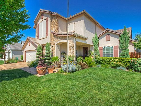 Take a look at this 5 bedroom, 3 bath Mediterranean style home that was built as a ''Dream Home''. The downstairs bedroom which would be a great guest suite or office with it's own bathroom. The living room with vaulted ceilings and fireplace opens to the kitchen and dining area. The kitchen features a convenient counter area with drop lights and farm sink. Upstairs there is a loft. The master suite has a two sided fireplace, soaking tub, separate shower and walk-in closet. There is new carpet and interior fresh paint though out! Features of the charming backyard include covered patio, pergola with misters, waterfall and stamped concrete...there is also an fun sandbox!!!