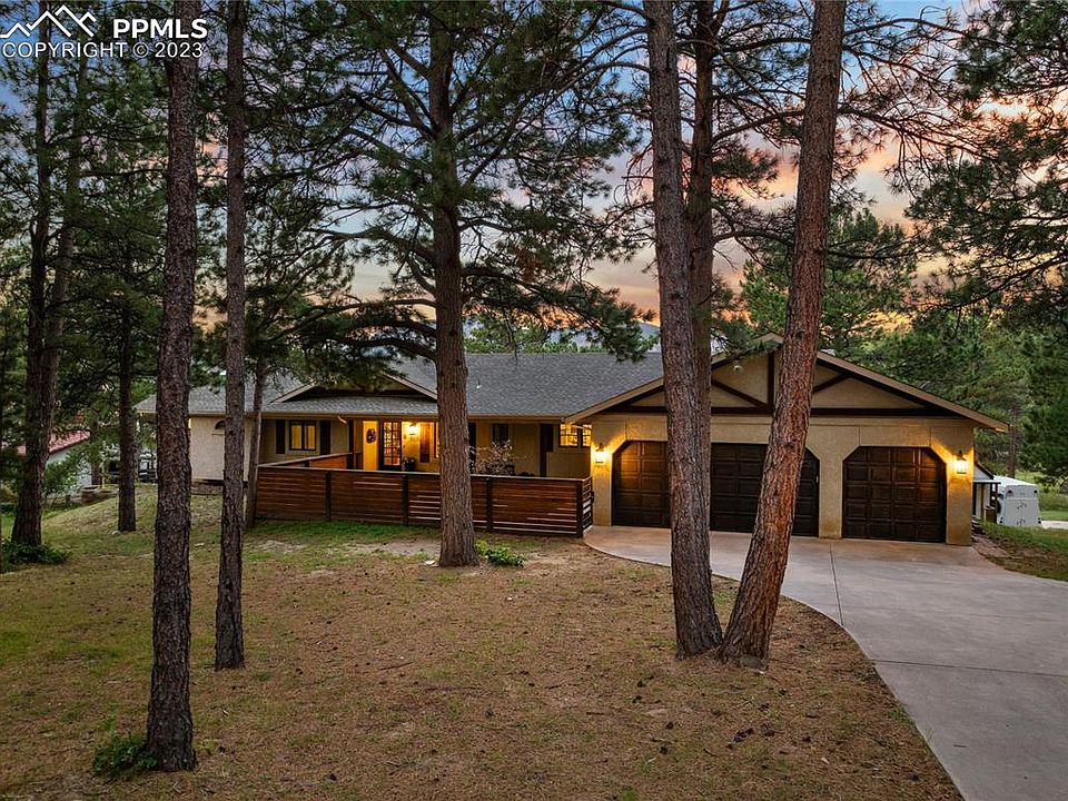 This hidden gem nestled in Monument is situated on 2.75 acres of beautiful pine trees, open meadow, and those breathtaking views of Elephant Rock in your back yard! Inside, you will notice a fully remodeled walk out ranch with radiant heated wooden floors, fresh paint, brand new bathrooms, tile floors, and the spacious kitchen you have been waiting for. This gourmet kitchen boasts a fantastic kitchen island, double oven, granite counter tops, gas cook-top and ample cabinet and pantry space. The expansive, freshly painted wood deck is perfect for entertaining and taking in all the mountain views. This ranch style home also has a huge walkout basement with two additional bedrooms. One of them is extra large (12' x 24') with additional living space and a walk in closet. Generational living can't get any easier with easy downstairs patio door access. The newly remodeled 3/4 bathroom in the lower level is very spacious and includes a glass surround shower and long vanity. There are three additional rooms in the basement that are bonus rooms. Great possibilities as extra office, workout, craft or bedroom space(s). The 19' x 26' storage area is sizable with plenty of room for your seasonal items. The main level office can be used as a fourth bedroom with a large closet. This energy efficient home is 2x6 construction, insulation on all exterior under-grade walls and even underneath the basement floor. This home truly has a lot to offer from the court yard entrance, grand foyer entry, vaulted ceilings, and new skylights to tons of light filled windows, RV 50 amp hookup, large cement pad out back, 2 electrical posts along the driveway, and huge 896 sq ft oversized 3-car garage. Award winning District 38 schools and no covenants.