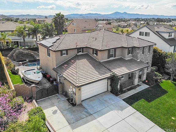 Located in the Orangecrest area of Riverside, this 5-bedroom pool home is turnkey and ready for a new owner. Highlights and features include 1bed with attached bath downstairs, individual laundry room , 4 bedrooms upstairs with a loft , and a large master with soaking tub. Just in time for summer, enjoy a beautiful backyard (lot over 10,000 square feet) with sparkling pool, spa, and water slide. The perks to living here don't end there, this home is equipped with solar, a 3-car tandem garage, RV parking and for added convenience, this house is close to schools, parks, and shopping. Upgrades galore including granite counter tops, upgraded cabinets, real wood flooring and a wide open floor plan perfect for entertaining.