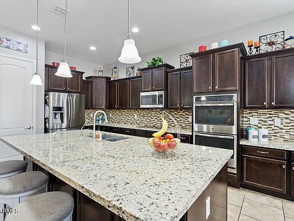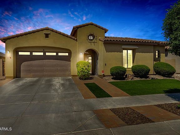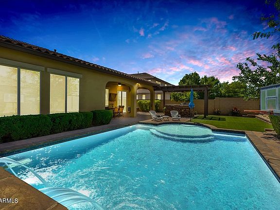 Gorgeous home w/private pool in desirable, Cielo Noche gated community. This spacious gated courtyard single level floorplan features a great room design, eat in kitchen equipped w/ stainless steel appliances including double ovens a pantry, large island + extended cabinetry. Gas hook up available for range! You'll enjoy 4 spacious bedrooms + den which could be used as formal dining or office. Owner's suite w/pool views, large walk in closet, double vanities, separate tub and nicely tiled shower. Notable features include walk in closets, white shutters, ceiling fans, surround sound speakers, and tile/laminate wood throughout. Large laundry room w/built-in cabinetry for added storage. Outside a low maintenance yard w/turf, pavers, built in bbq, pergola and sparkling sheer descent pool!