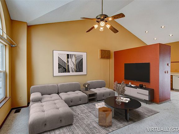 The house is move-in ready with many recent upgrades, including a new furnace, a 5-year-old roof, and a front and rear yard sprinkler system. An evaporative cooler keeps the house cool in the summer months. The laundry room in the basement includes built-in cabinets, and the two-car garage is equipped with a new garage door opener, built-in cabinets, and a workbench. A home warranty is available for added peace of mind.