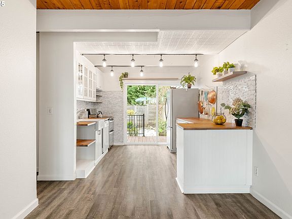 Stop paying rent and own this charming 2-bedroom, 2-bath townhome in the desirable Springridge community instead! Low HOA makes this one especially attractive! This home blends comfort, privacy and convenience. Exposed beams, LVP flooring and fresh interior paint create a warm and inviting atmosphere. The slider off the updated kitchen flows out to a deck and private fenced yard for easy entertaining and enjoying your garden. On the main level is a remodeled full bath with a walk-in shower and laundry. Large double-pane windows and sliders bring in abundant natural light while offering tranquil views of the surrounding trees. The spacious primary bedroom features a private balcony, large closet and plenty of natural light. A large second bedroom and full bathroom complete the second floor which has new carpet. Minisplits on both floors provide year-round comfort and double pane windows keep everything energy efficient. The attached, oversized garage provides storage and security. Conveniently located with easy access to restaurants, shopping, Highway 26, parks, trails, the Rock Creek gold course, public transportation and so much more.