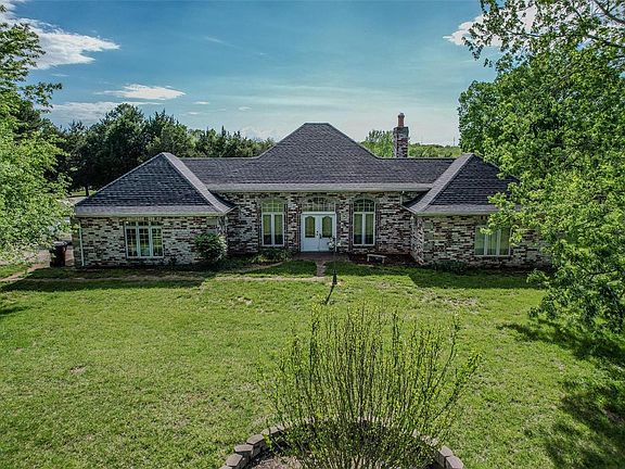 This ALL-BRICK HOME is located outside city limits sitting on 3.11 acres. Home has 3-bedrooms, 2-bathrooms, 2 car garage, fenced in area for kids to play and pets to run. This home has very large rooms with plenty of natural light, 12-foot ceilings in the living room, kitchen, entryway, and 10-foot ceiling in the remaining rooms. The kitchen is spacious offering beautiful cabinets and ample counter space. There are beautiful brick accents around cooktop & refrigerator that continues into the living room covering a full wall that includes a gas fireplace. The living room and foyer also features nice hardwood flooring. This home is in a great location, and just minutes from town. Updates include new roof, newer cooktop, dishwasher, refrigerator, HVAC in 2018, and crawlspace was encapsulated in 2022. New roof was put on April 2024,