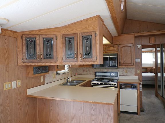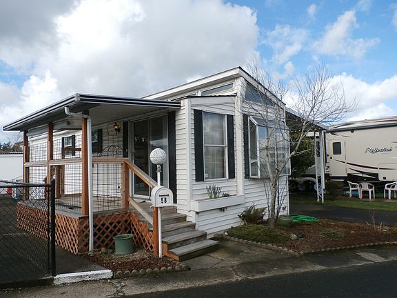 WOW! This cute, 1 bedroom, 1 bath manufactured "Holiday" home is loaded with extras and upgrades. Tons of cabinets for storage and the floor plan is well designed. Two large garden windows in living / dining room. Big windows and a vaulted / ceiling window thru out the entire mobile which gives it a feeling of light and spaciousness, ceiling fans, built-in microwave, sound system, oversized shower, central air, newer deck...and the list goes on and on...even a built-in ironing board! Located next to the swimming pool for lots of summer fun in a well managed, clean park. Space rent is $530 / month and includes water / sewer/ and garbage. The address is Mobile Park Plaza,19776 SE Stark #58, Portland, OR 97233 (a senior Park 55+).