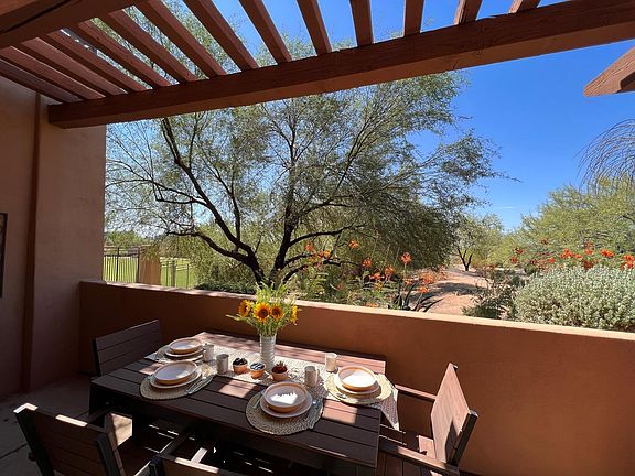 ** Booked Jan - March 2026** Find yourself in resort living at its finest. Fully furnished condo located in the gated and prestigious Venu at Grayhawk Community. Ground level entrance, two bedrooms on second floor, 1 Car garage with cabinets and over head storage. Updated kitchen with granite counter top, cabinets and pantry with pull out shelves. An oversized patio shaded by mature trees in a very peaceful location overlooking the desert. Upstairs are two master bedrooms, both with walk-in closets that are professionally finished, giving you plenty of storage. The community has two pools, two spas, fitness center, BBQ grills, concierge and theater room. Grayhawk Community has walking paths to multiple parks, shopping, restaurants and medical. Minutes to the 101 Freeway. Minimum 90 day stay. **Property is booked Jan - March 2026. Pricing adjusts based on seasonal rent: April - December $3,100 a month January, February, March $4,500 a month Rent covers all utilities with $150 credit towards monthly electric bill. Any amount above credit will be responsibility of tenant per APS billing. **Minimum 90 days lease. Renters responsible for utilities for leases longer than 90 days. Minimum Requirements for rental: As a reminder, each person over the age of 18 must complete and submit a separate application. Applicants who do not meet minimum screening standards will not be approved. **Minimum lease qualification standards: 1) Applicant(s) must have current photo identification and a valid social security number. 2) Applicant's monthly household income must exceed three times the rent. All income must be from a verifiable source. Unverifiable income will not be considered. 3) Applicant's must receive positive references from all previous landlords for the previous 5 years. 4) Applicant(s) may not have any evictions or unpaid judgements from previous landlords. 5) Applicant(s) must exhibit a responsible financial life. Credit score must be minimum of 650. 6) A background check will be conducted on all applicants over 18. Applicant's background must exhibit a pattern of responsibility. 7) Applicant(s) must be a non-smoker. 8) Occupancy is limited to 2 people per bedroom.