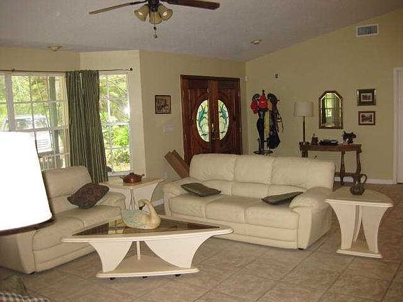 BACK ON MARKET LARGE country home ON 1/2 ACRE.4 bedrooms with 2.5 bath with 8 foot wide front porch, enjoy the summer breeze. features include a super floor plan. its a 3 way split plan, chefs kitchen overlooks lg family room. vaulted ceilings, living room with bay window. 30 x 60 foot detached building on a buildable lot.6' privacy fence. loads of palm trees with lg. oaks out front.