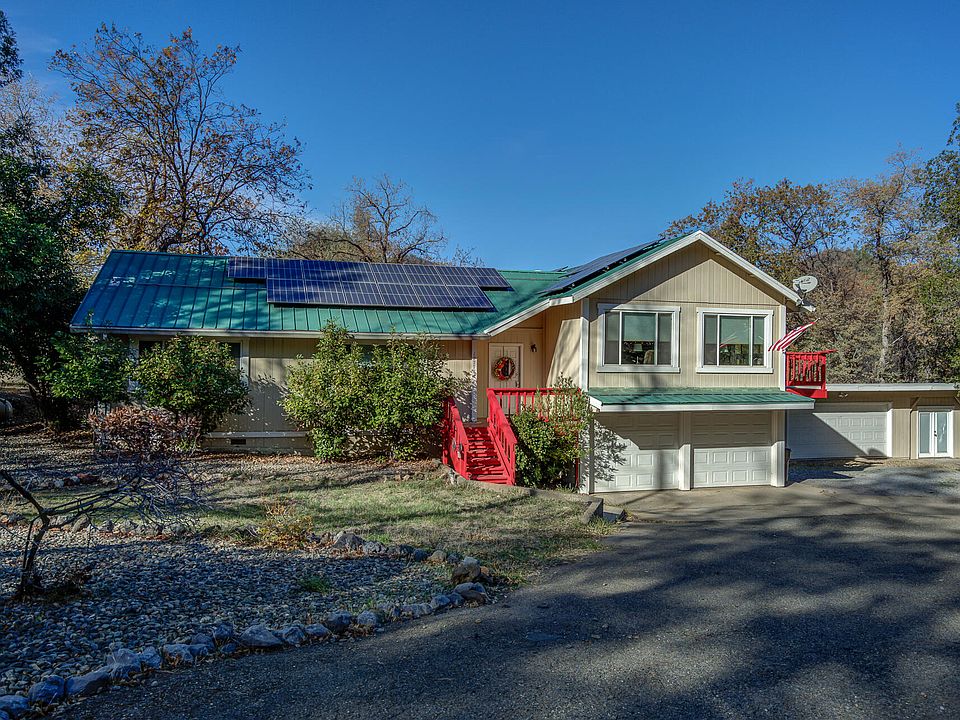 Country home on nearly 2 rolling acres, this home has updates, solar with metal roof and the bonus detached shop/garage and attached workspace. Enjoy the property from the decks and the peaceful setting it sits in. This is a must see.