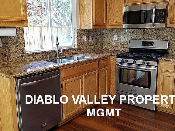 Fabulous updated 4 Bedroom 2.5 Bath home in pristine condition located in the Maralisa Courtyard. Beautiful gourmet kitchen includes granite slab counters, stainless steel appliances, New built-in microwave, gas stove, dishwasher, refrigerator, newer touchless kitchen faucet with pull out, and new garbage disposal. Plenty of cabinets for storage and eat-in area. Beautiful wood laminate flooring downstairs. Freshly Painted Interior. Carpet only 1 year old upstairs in all 4 bedrooms, hallway, and stairs. New Linoleum flooring in master bathroom. Separate formal dining room. Spacious living room with gas fireplace. Dual pane windows. Central heat and air. Ceiling fans in the living room and master bedroom. Indoor Laundry room upstairs includes washer and dryer. New window blinds in 2 of the bedrooms. Master bedroom includes lots of natural light, double closet space. Master bathroom with dual sinks, new flooring. Landscaped yards. Front yard is maintained by HOA. Tenant responsible for backyard maintenance. Community swimming pool. Altamont Creek school across the street. Washer, dryer, refrigerator included. Owner prefers no pets but may consider small dog with extra deposit. All rental applications need to be submitted through our website. We do not accept applications or credit reports through Trulia or Zillow. Diablo Valley Property Management DRE# 01290636 1 Year Lease.