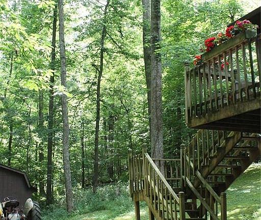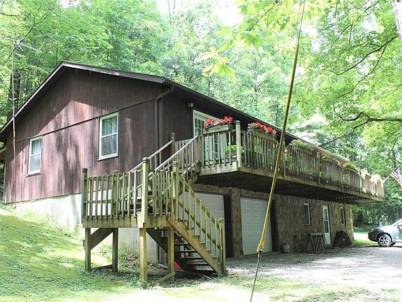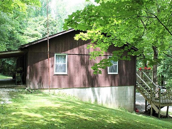 First time on the market! Home built with love and pride ready to be passed on to new owners. Living areas are large with a separate dining room, living room that is 26 x 15. Kitchen has an antique piece valance above the sink and copper-look back splash surround, extra counter top has had many pie crusts and cookies made on it and doubles as breakfast bar. Full bath with shower in hallway leading to 2 bedrooms with double closets. Master bedroom with private full bath and door to front deck. Lower level big unfinished area, washer/dryer space, built-in two car garage with workbench. Wood stove tied into furnace for toasty winter heat. Covered back deck, large open front deck. Beautiful Brown County stonework exterior/wood.
