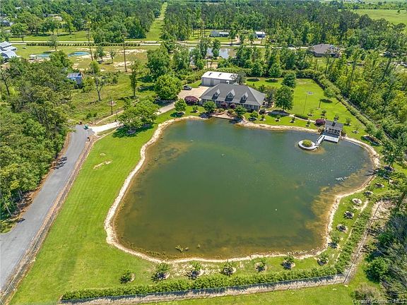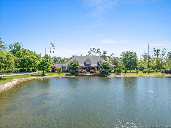 Welcome to your slice of paradise in Carlyss! Nestled on 3.4 acres of lush landscape, this exquisite 3-bedroom, 2.5-bathroom home boasts tranquility and luxury at every turn. As you enter the property, you'll be greeted by the serene sight of a 1.2-acre pond, where vibrant sunsets paint the sky for each twilight. The front porch overlooks the water, offering the perfect spot to relax and take in the peaceful ambiance. Venture along the manicured path to the screened-in porch, opening up to a dock adorned with lights, casting their shimmering glow upon the pond. The dock features a bridge leading to a beautifully landscaped island in the pond--an oasis right in your backyard. Inside, the home exudes elegance and comfort. The grand foyer sets the tone with its dazzling chandelier, while ample natural light floods the open-concept living space, creating a warm and inviting atmosphere. The spacious kitchen is a chef's dream, featuring a perfect layout, walk-in pantry, and custom shades adorning the windows. The oversized primary suite provides a luxurious retreat, with plenty of room to unwind after a long day. A conveniently placed office near the kitchen with thoughtful built-ins. Two additional bedrooms upstairs offer ample space for all. But the luxury doesn't end there--step outside to discover a meticulously landscaped yard, complete with a large 40x60 shop boasting built-ins and roll-up doors. Whether you're enjoying a quiet evening on the front porch overlooking the pond or exploring the tranquil waters from your private dock, this Carlyss abode promises a haven of serenity and opulence at every corner.